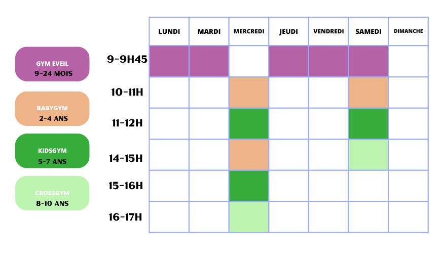 Le cours de babygym, sera organisé en deux groupes d'atelier selon l'âge des enfants